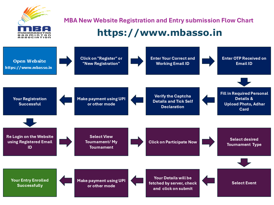 Flow Chart for Players registration and filling entry form for tournaments 2026
